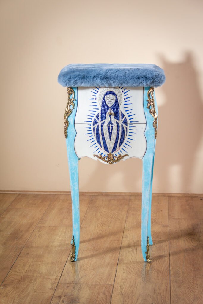 Entre mobilier revisité, mosaïque artistique et sculpture contemporaine, chaque œuvre possède son identité propre et ne fait l’objet d’aucune reproduction.